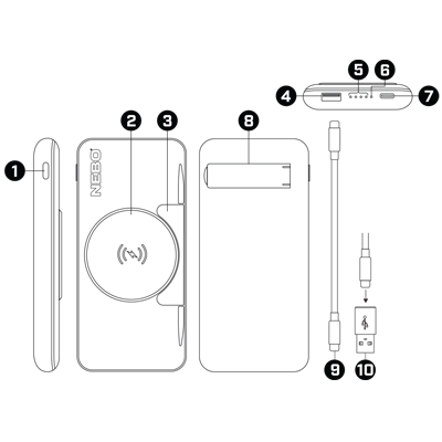 The NEBO Power Bank features a convenient wireless charging device holder, so you can simply place your compatible smartphone on top, and it will start charging immediately. It's a clutter-free and hassle-free way to keep your phone powered up.