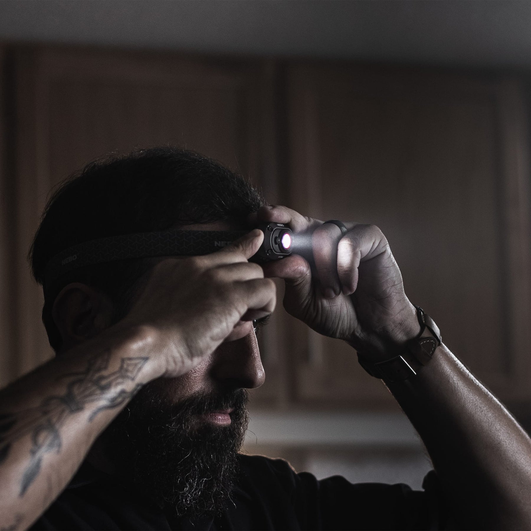 At Nebo Tools, we continually innovate so that we can offer the highest quality LED lighting products at the best price. The NEBO® Mycro Headlamp & Cap Light is a rechargeable, hands-free, 400 lumen lighting solution. The integrated tilt feature allows you to position the beam exactly where you want it. Mycro Headlamp features dual green and red LED chips, with a direct-to-red feature for stealth viewing